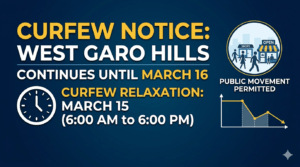 - Curfew to Continue Until March 16 in West Garo Hills; Relaxation on March 15 from 6 AM to 6 PMTura, March 14: The District Administration of West Garo Hills has extended the curfew across the entire district following reports of violence and disturbances […]