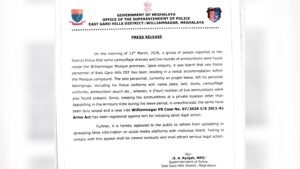 - BJP Expresses Concern Over Violence in Garo Hills, Calls for Peace and Strict Action Against InfiltrationShillong, March 12: The Bharatiya Janata Party (BJP) has expressed deep concern over the incidents of violence that occurred on March 9 and 10 […]