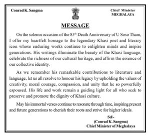 “Ngi kyrpad ïa phi ban tuklar mardor ïa kane ka kam shwa ban poi ka por ban die ïa u synshar mynta u bnai khnang ba ki nongrep jong ngi kiba sah ha ki jaka ba don hapdeng ka jingïakajia pud kin ïoh ïa ka dor kaba ki dei hok ban ïoh,” la ong shuh shuh ka Forum.